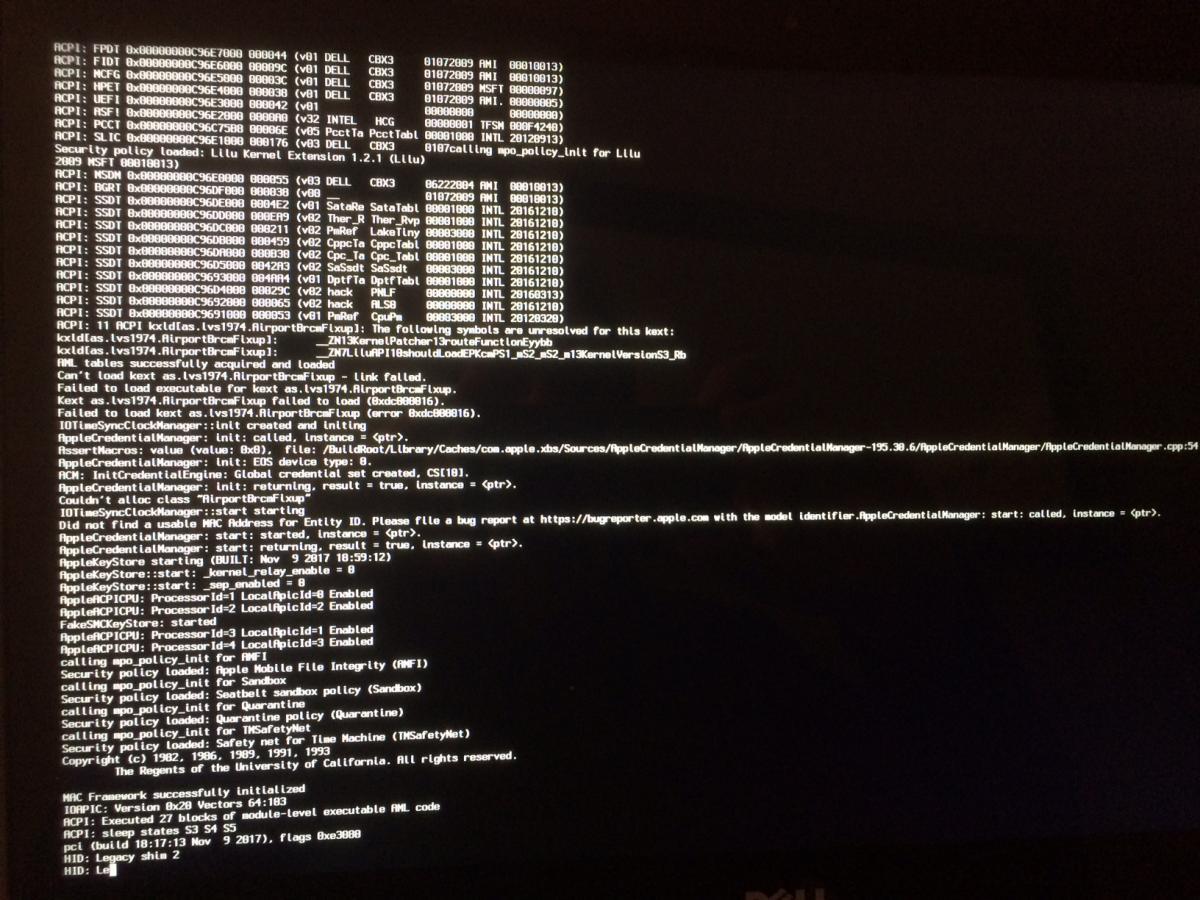 quartz38 Posted January 13, 2018 Author Share Posted January 13, 2018 Hi everyone? No more chance with my "special" E7450 with the USB 2 key. I went to the state I can boot up to graphic initialization and stuck on the page in my first post. i understand that kexts are directly associated to acpi patched. so I am trying to associate with different ones. I am typing this text from a running Sierra with Clover 4297. There is another difference concerning my E7450, it is a full HD touchscreen and touchscreen is running under Sierra !! nice, a touchscreen Mac So here we are. If I can't manage, I will stay on Sierra. Many thanks for you kind help everyone PS : I join the bootlog for Sierra if it can be useful bootlog.log.txt Link to comment Share on other sites More sharing options...