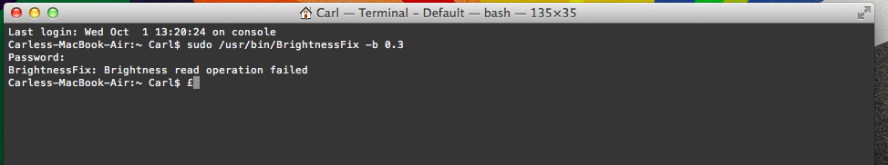 EMlyDinEsH Posted September 30, 2014 Author Share Posted September 30, 2014 OK! I'll tell you something. P.S.: my laptop is an Asus K55VD if that helps! I tested the command in terminal and its working fine. Take a look at the screenshot from my notebook. Link to comment Share on other sites More sharing options...