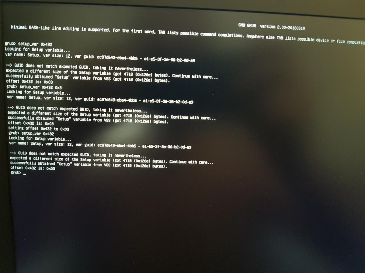 1. Just to be sure, I verified the 0x432 value and it is showing 0x03 instead of 0x3. When I try to set it to 0x3, it sets itself to 0x03. Could this be the issue? Edit: I changed dvmt to 0x1 and 0x4 and both times it would not boot, so I guess 0x3 really is the sweet spot. Also I checked my BIOS, I'm on 1.12.3, downloaded from here.