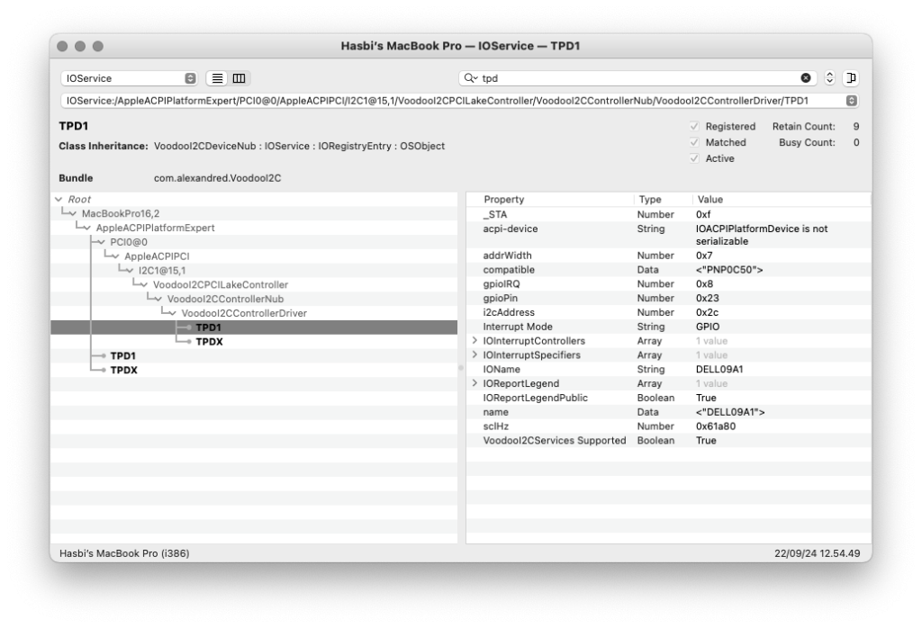 Hello, I've to try to follow opencore guide to activate my touchpad with Interrupt GPIO mode but always no luck. Can someone please help me out with this? Here is my spec Dell Latitude 5510 i7-10610U, 2x8GB DDR4, Touchpad with I2C TPD1, 128GB SSD NVMe for Ventura, BCM94360CS2 WiFi. I've attached my config, ioreg and untouched DSDT. Thanks Archive.zip iOreg.ioreg
