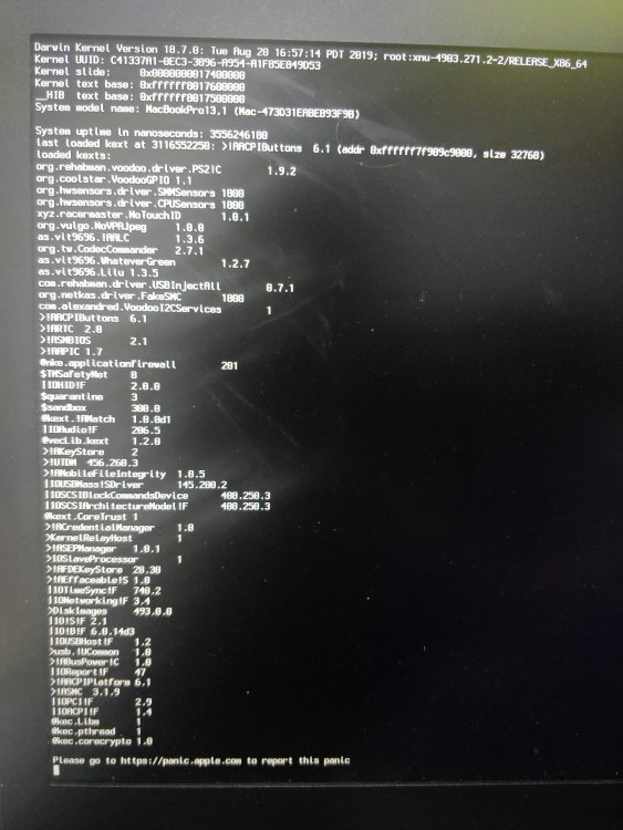 Thanks for the reply again mate, you have been a star. So couldn't even get to the desktop so I had to go into recovery using FakeIDs and go on the terminal that way. The installer is from a USB, but I still have all these boot options. In recovery, i tried the ones you said above: These worked fine (from what i could tell): sudo chmod -Rf 755 /S*/L*/E* sudo chown -Rf 0:0 /S*/L*/E* sudo chmod -Rf 755 /L*/E* sudo chown -Rf 0:0 /L*/E* without sudo though, as it said sudo did not exist. These didn't work (it stated a read-only file system) guessing because of im in recovery. sudo touch -f /L*/E* sudo touch -f /S*/L*/E* This one said the folder didn't exist, probably because I'm in recovery again. sudo kextcache -Boot -U / I will try get into the installed OS but thats when I get the kernel error.