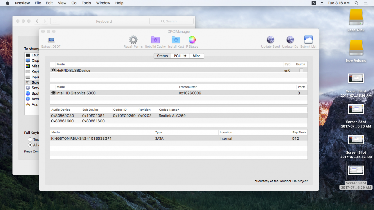 4. Ok So I have got all the files you asked for to Patch DSDT/SSDT: Screenshots of PCI LIST and Status in DPCI Manager: IOreg and system report Save files also the ACPI Archive Haier IO_Reg_SysReport.zip Haier_ACPI.zip What Currently is Working is = Touchpad,Keyboard,Graphics,USB Ports. What Needs to Be Fixed = 1. Backlight 2. Battery Indicator(It always shows a cross over the battery saying "Low Battery") 3.Audio 4.Touchscreen(i2c HID Touchscreen Model: FTSC1000 Confirmed from Linux on i2c INT3433 Chip) Voodooi2c will work but needs DSDT Patch. https://github.com/alexandred/VoodooI2C/wiki/DSDT-Edits