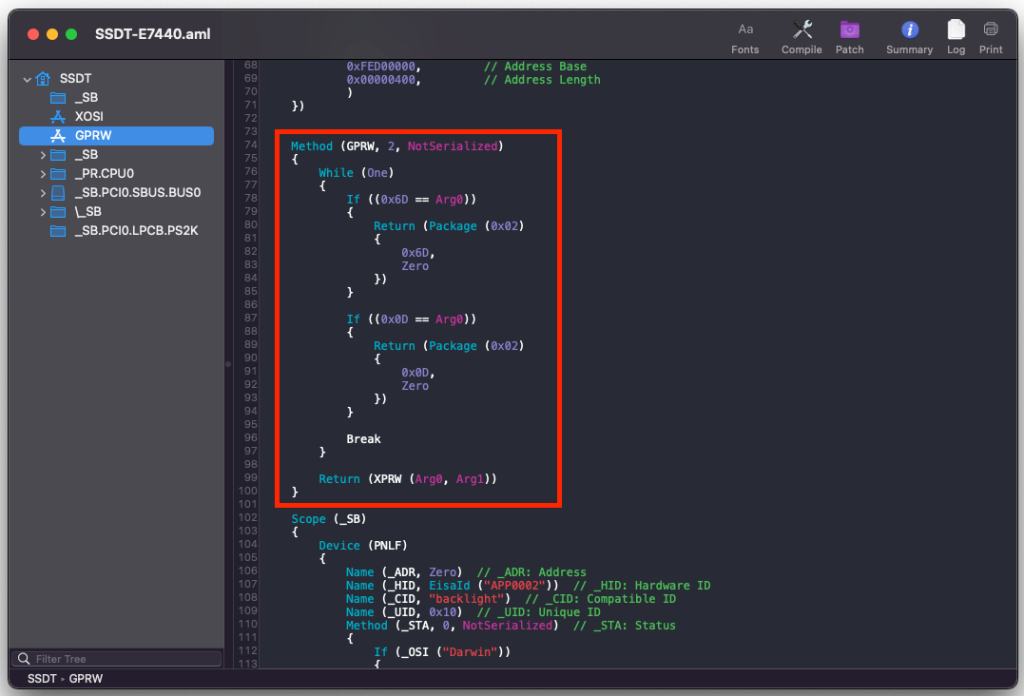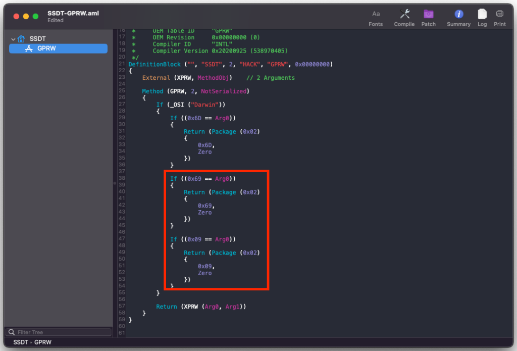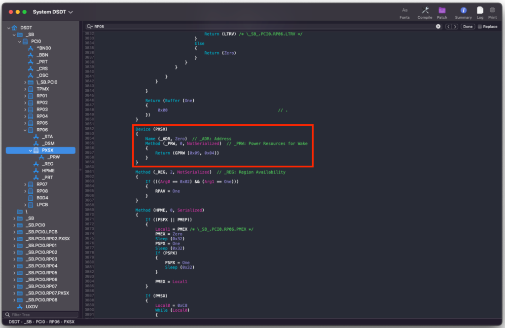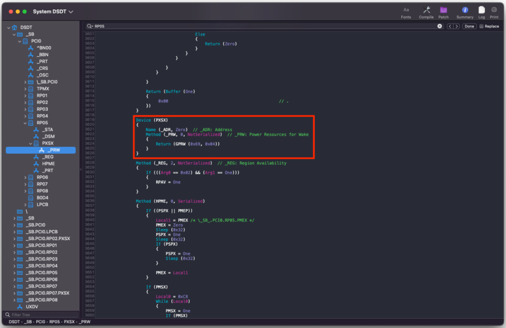 Seems like the WWAN port has it's own Args passed. it is the only one passing the GPRW (0x09, 0x04) It's the only one passing the 0x09. I don't know why is this happening, but handling it on the SSDT-GPRW fixed it. maybe it's the default thing on combo WWAN/mSATA port. I also tried disabling the default WiFi/BT mini-pcie port on BIOS but still instant wake happens. I am just happy now that this is the fix. I was worried and can't concentrate last time as the fans ramping up fast on instantwake lol Device (PXSX) { Name (_ADR, Zero) // _ADR: Address Method (_PRW, 0, NotSerialized) // _PRW: Power Resources for Wake { Return (GPRW (0x09, 0x04)) } } -