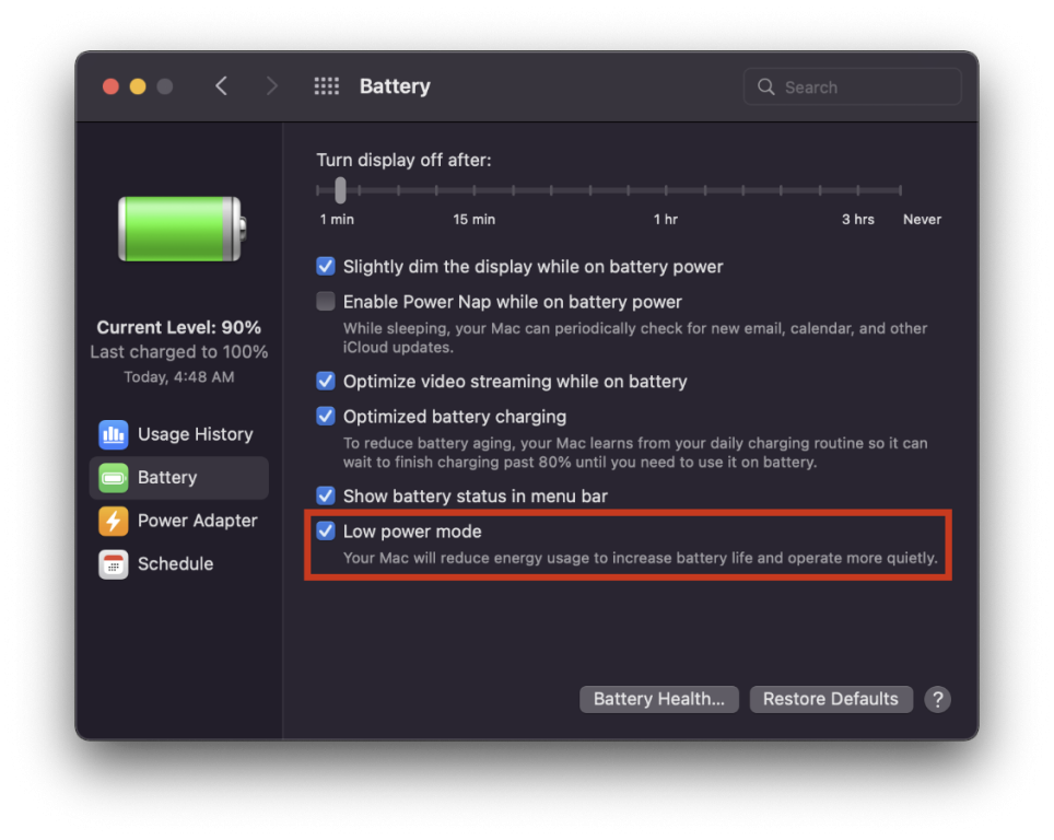 I have been optimizing my hack these past month and my target now was better battery consumption. My new battery (generic brand 54wHr) last about 2~3 hours on single charge and I think I might get better battery consumption with optimizations. I managed to make hibernation work ( mode 3 and 25 ) so I can save my battery health over time, (battery is much more expensive than SSD lol) My hack Hibernates 1 hour after sleep on battery, 4 hours when charging, and directly when battery hits 7% If you have suggestions or guides on how can I make my hack more battery friendly, kindly help me out On my hack I saw only few options on the Battery menu on System Preferences but what I saw on others on Monterey, they have way more options to tinker for better battery. Is this normal or there is something we need for this? E7440 Battery Settings Others: