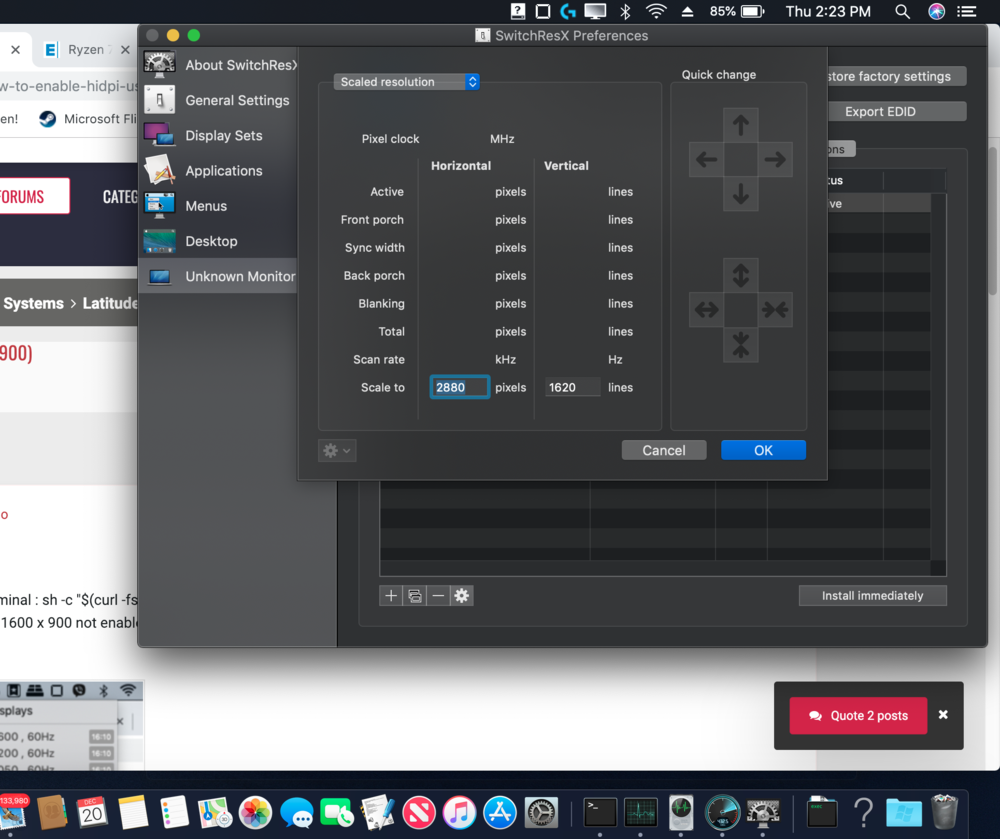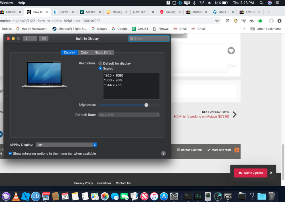 6. I have a e7470 like you, running scaled resolution Retina likely same reason as you. The default fonts are too small at out of box 1080 resolution. I am running mojave, scaled resolution (retina) 1440 x 810, look at my screenshots for reference. In the past I used a slightly larger resolution for larger font and I find it's still a tiny small but a far better solution than stock. I am not sure if you can make it show up in the "System Preferences" Do you have any other issues on your e7470?