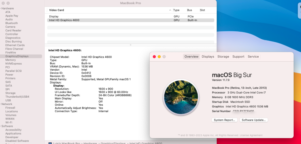 Not Working was just the heading to the list below ( those 2 remaining things are not working ) 1 - Ethernet shows self assigned IP when connected ( Need to test in Windows, Might just be a faulty NIC, Seems to be detected fine and manual IP doesn't help ) 2 - Sleep ( Bios Looks good ), If it sleeps or I hit sleep I just get a black screen, its on but cant see anything ( will have to continue troubleshooting ). I believe everything is working perfect with the iGPU ( resolution / acceleration / etc ), Initially you said : "Graphics settings are incorrect with no need to patch fbmem or stolenmem on HD4600 iGPU." Other than the above you didnt give me much direction on where to check but it looked pretty clear when I opened the Config.Plist / DP section & adjusted accordingly which is hopefully correct. ( BEFORE ) AFTER - Matching what you posted in one of your first replys. So in that screenshot above I am just showing you that it now matches what you said it was suppose to be and looking for you to confirm that it looks correct ( included the EFI folder ). I also updated all the kexts to the most current and thats also working perfect! Sleep issue - Only remaining problem I believe. Sorry for not being clear on the going to sleep part I meant when it goes to sleep and tries to come out, I know the screen is suppose to go black when it sleeps hahahah. If I click the Apple Menu >> Sleep or close the lid it takes a few mins but appears to goto sleep. If I reopen the lid or click the power button the laptop springs back to life but the screen will remain black ( backlight is on and laptop appears to be on ) but no display. If I let it sit this way it will just reboot in 5 mins. Whats been done - ( sleep troubleshooting ) - Ran through the preparations here - https://dortania.github.io/OpenCore-Post-Install/universal/sleep.html ( terminal commands ) - Set all the recommended bios settings. So its possible its able to sleep but doesn't successfully come out of sleep or atleast not back to a visible desktop. If I do not mess with sleep the laptop works fine. Is there a GPU setting I can check in OCAT or part of my config in the EFI I posted last that can be tweaked maybe? If you can guide me where to look or what to check im sure I can get this fixed pretty quickly. This is pretty the only remaining issue, Other than that everything is working perfect.