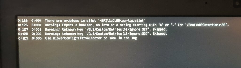 I have installed Clover boot ver. 5109 and now when I want to upgrade him to last ver. 5136 I get error (attached picture) and I can't anymore run Catalina. I attach config.plist for clover ver. 5109 where is all OK and for 5136 for what I get error.. So I will be grateful if someone can modify and repair this ponfig.plist for new ver. 5136... thx.. 5109.zip 5136.zip