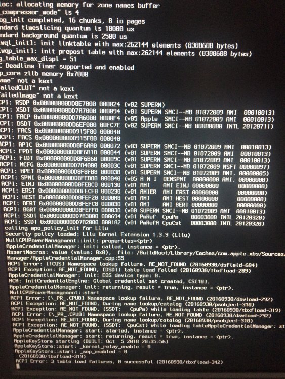 1. Hello everyone, So, i need help to install hackintosh on a Intel X10SLL-HF running a Intel Xeon E3-1220 V3 with 16 GB RAM and a Nvidia GeForce GT 710 v2(2 GB). I got two pen drives, one with the macOS Mojave and other with Clover. I’m stuck at the boot black screen with a “ACPI Error: 3 table load failures, 0 successful (20160930/tbxfload-342)” message. Attached the photos of the error and the clover pendrive content. Any help would be appreciated! CloverEFI.zip