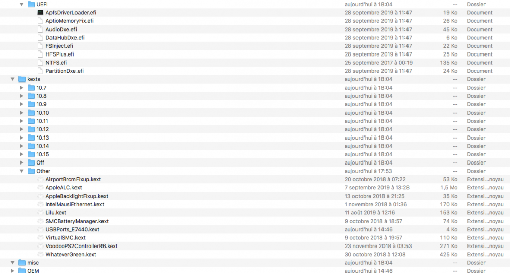 Thank you a lot man you are the best !!!! It's now booting on Catalina, I had no wifi so I added AirportBrcmFixup.kext in EFI, I also changed Voodoo kext because my pad wasn't working good. So I took the one from Hotpatches and now I will try to reboot on the three systems. I will tell you if there is something wrong. For the moment, on HS everything is working good. EDIT : On Catalina sound !!! And wifi but no bluetooth (I think I will find the solution, I need kexts for my wifi card)- 17 replies