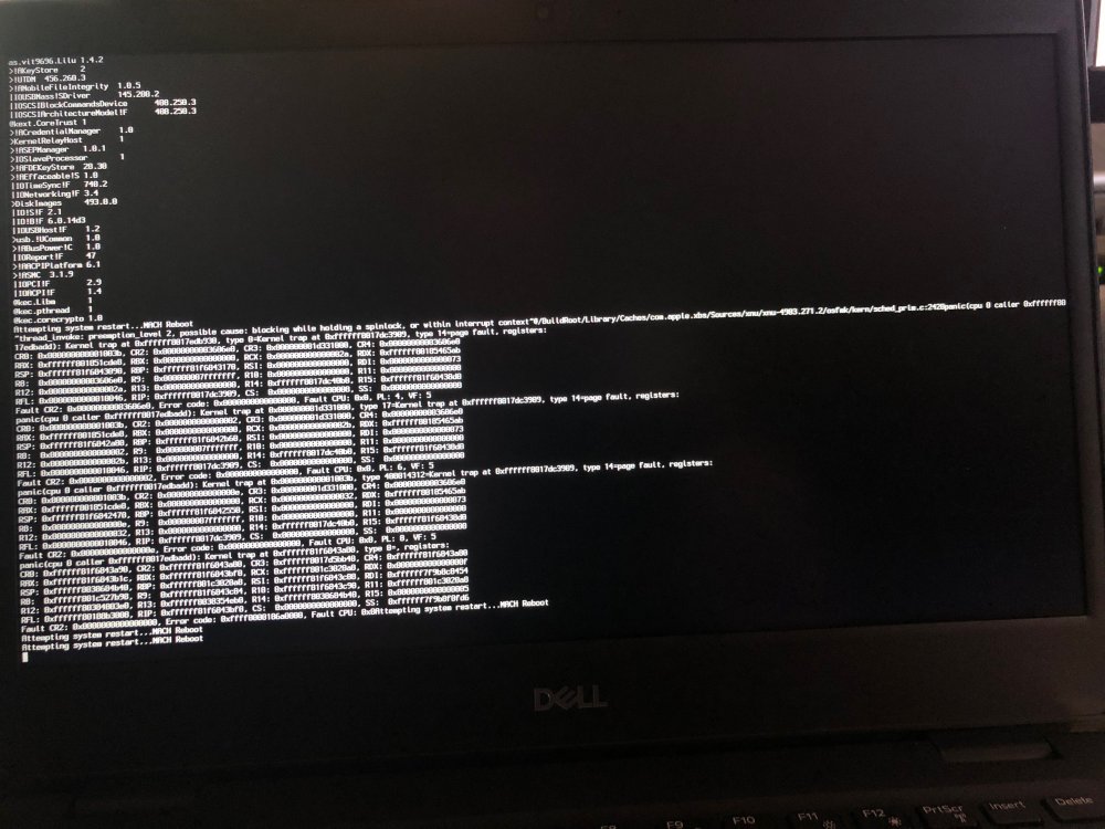 Hi all. Just tried to install Mojave on my Dell E3400 (http://linux-hardware.org/?probe=bcaff24112) using @Jake Lo's Catalina based Clover folder and didn't get too far. Please see attached boot log. The initial screen resolution looked perfect, but once it goes to verbose, it halts with the lines shown and goes no further. I'm thinking it's the wrong Clover files and kexts with Mojave, but some input from the gurus would be greatly appreciated. Using Clover_v2.5k_r5103. Replaced the ACPI and kexts folders with the ones in Jake's folder. Thanks. MJJ -