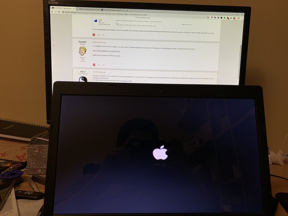 So i installed 2nd ssd in dvd room place. so i have 2 ssd's 1 have now High Sierra and second is for Mojave but i cant get Mojave installer working even by this method.... https://support.apple.com/en-us/HT201372 Apple logo just appears and then pc restarts...
