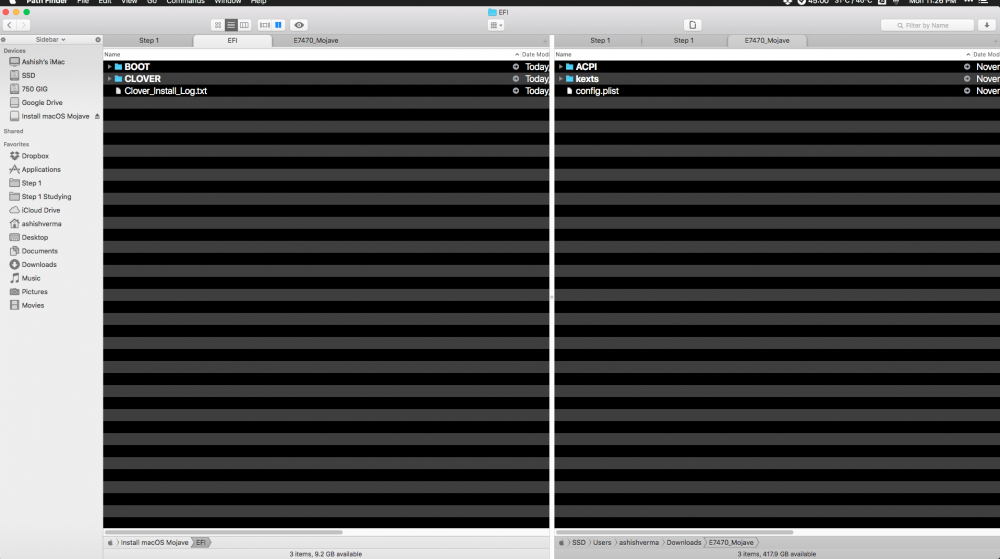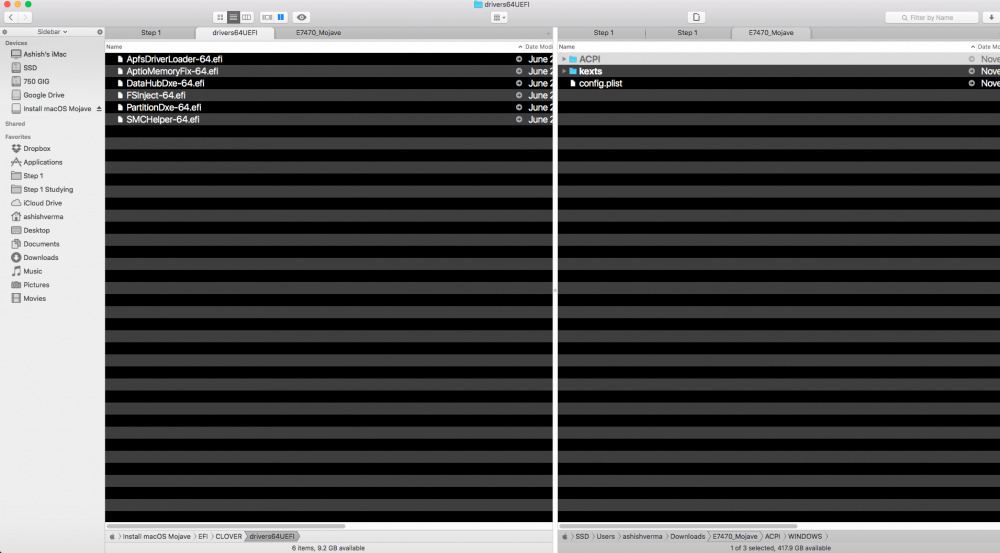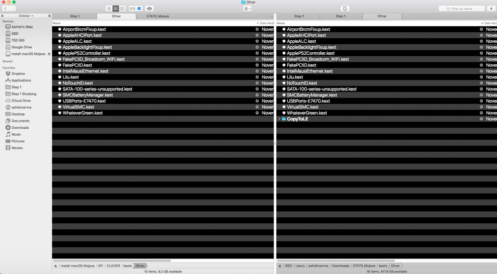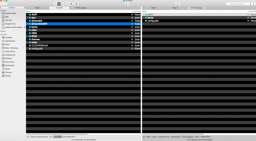 I installed clover on to my usb drive. I also got into the efi and downloaded the boot pack you had me download. I copy and pasted the files from the  kext/ other files only to the efi that is on the jump drive. I copied to clover/kext/others. I also copied the acpi file that I downloaded and pasted it to clover and replaced the old acpi. Now, the copytole files, it says to paste them to the library/extension. However, I don't have that on the jump drive. So do i do that after I install mac osx on my dell? Here are some screenshots to help! I also copied the config file from the downloaded zip file and copied it to the clover folder on my bootable jump drive.
