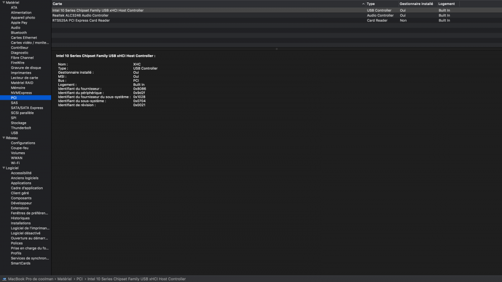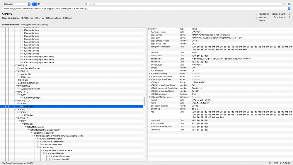 I have the DW1820A (CN-0VW3T3) 14e4:43a3 in my xps 13 9350, in C/K/O I have AirportBrcmFixup.kext, in L/E I have BrcmFirmwareRepo.kext and BrcmPatchRAM2.kext. The card being invisible in IORegistryExplorer, I checked FixAirport in clover as Hervé explains in the guide, it appears in ARPT@0. This is where I no longer understand what I have to do. In S/L/E we find IO80211Family.kext and IO80211FamilyV2.kext. You often mention AirPortBrcm4360.kext which from what I understand is in IO80211Family. Correct me if I'm wrong. I don't have it alone. Do I have to do other things before I enter the values in clover/devices/Arbitary/properties or is that just what I have to do?