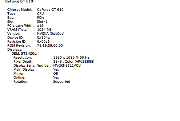 Ok, I looked in Graphics/Displays, and this is what I see. Please let me know if you also need a screenshot of PCI Cards. Thanks vgupta -