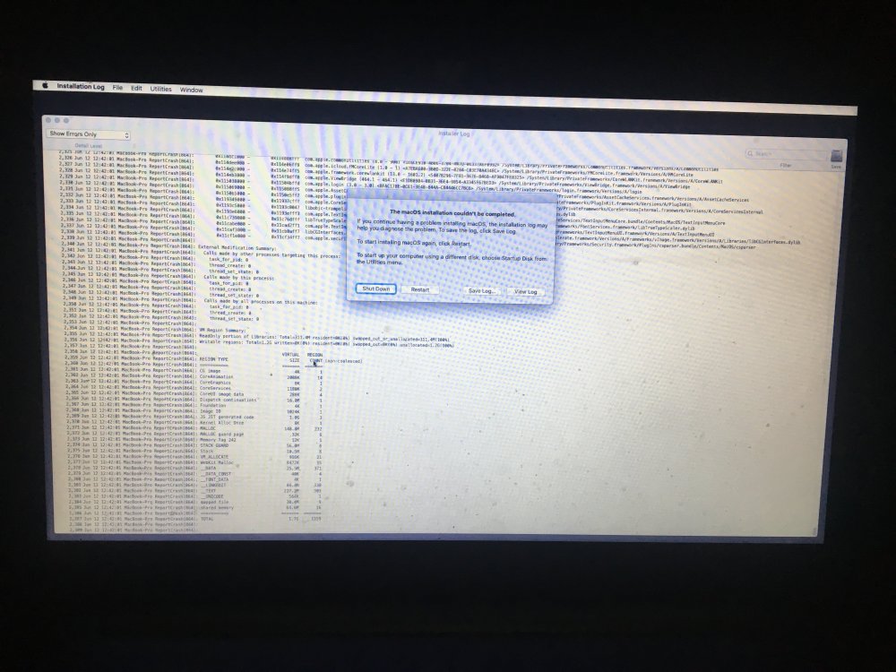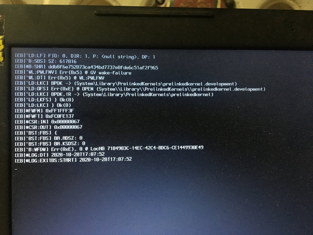 Hi, While I was trying to enter the final installation screens on macOS Catalina, and after the Apple logo loader (that lasts for about 15 minutes) the installation didn't continue and it showed those errors. I've attached my Clover folder, screens shots and the saved errors log ..... I'm using Catalina 10.15.4 which I download earlier form the Apple Store on my VM, and I was installing macOS along side Win10 on my SSD. (I've done all the preparation for that) my specs: Dell 5570 intel i5-8250U intel U620 / AMD radeon 530 Kingston 240GB SSD CLOVER.zip Installer Log 11-May-2020.zip