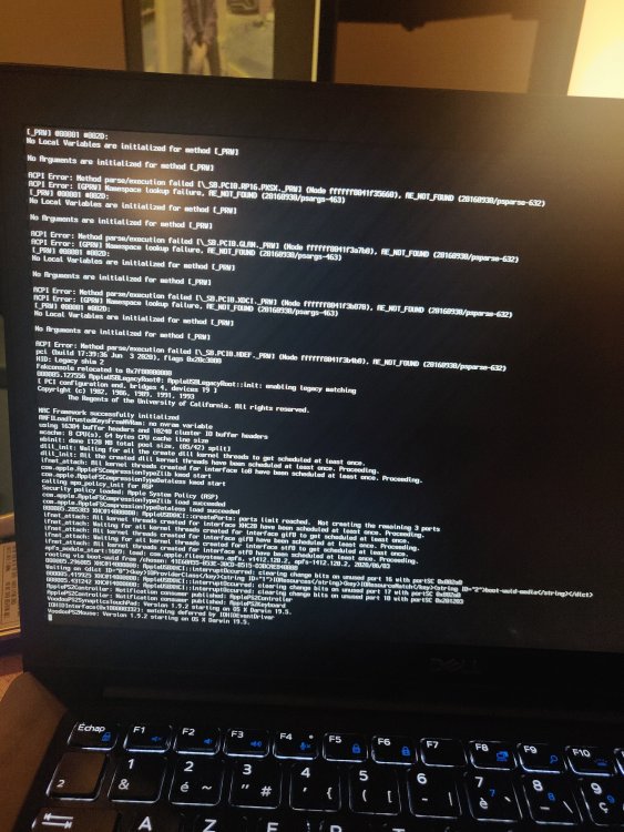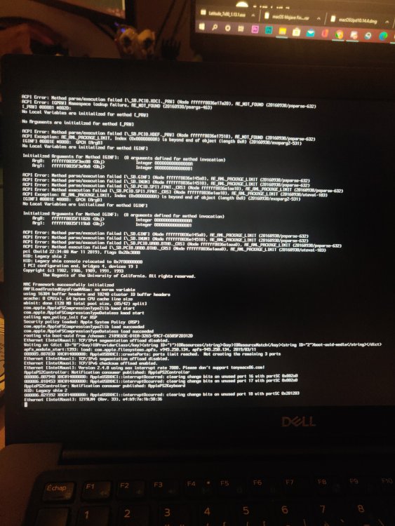 I did step by step the above tuto. I tried the tuto for Mojave 10.14.x with 10.14.6. I did exactly that : I downloaded the dmg file from apple store (8gb) I format my USB key with that : diskutil partitionDisk /dev/disk# GPT JHFS+ "USB" 100% I install the dmg Mojave with this : sudo "/Applications/Install macOS Mojave.app/Contents/Resources/createinstallmedia" --volume /Volumes/USB I install Clover r4919 (and I tried the r5093 and r5119) on my USB with exactly theses settings : " Clover for UEFI booting only Install Clover in the ESP UEFI Drivers AudioDxe-64 DataHubDxe-64 FSInject-64 SMCHelper-64 ApfsDriverLoader-64 AppleImageLoader-64 AptioMemoryFix-64 Fat-64 HFSPlus NvmExpressDxe-64 PartitionDxe-64 Ps2MouseDxe-64 UsbKbDxe-64 UsbMouseDxe-64 Themes (optional) Install Clover Preference Pane (optional)" I lunched Clover Configurator but the EFI part was already mount. I cospy/past this : "7490_Mojave_Clover_Pack_#8.zip" in EFI/Clover I put my USB key on my computer and it's not working ... I did the same for 10.15.x with the lastest version of Catalina. And no succes too ... I tried everything (with injected kextts, without injected kexts), change the version of Clover. I put the good BIOS settings, I downgrade my BIOS version from 1.14 to 1.13.1. I tried really everything but it's not working. I'm doing it for 17 hours now ... The latest version that I tried was the 10.14.6 version tuto. I'm with a virtualbox macos 10.15.4 Catalina. My usb is a 16gb 3.0 USB I have the exact same computer that in the tuto. I took some pictures of my "errors" when I try : Normal settings (nothing changed, just -v as boot settings) When I do with injected kexts when I do without injected kexts. Please help me, I will tilt so much ...