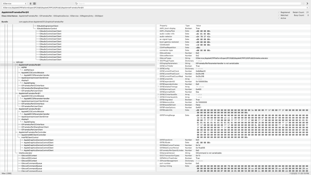 1. I did my best to analyze the iOreg informations regarding frambuffers, studying and practicing what is the effect on config file.
