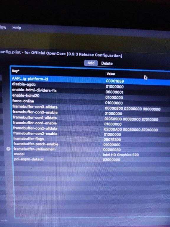 ive been trying with 00001659 09001659 00001B59 sine ventura 13.4-13.5 Sonoma beta 1-3 and all i get are black screen and not 3min black screen . heck i even tried using some of these configs but with 00001659and still black-screen ,regarding nvram i always reset ,with 00001659 on sonoma only thing i added in boot-arg is the -no_compat_check to avoid the not supported issue . im simply trying to figure out why everyone else on sonoma can have HD620 working and mines refuses to work , i even went as far as thinkin that maybe its the screen size so maybe dvmt shouldnt be set to 32 ,test with 34 38 64 96 128 all same results , no hdmi output as well also p.s after i saw this random efi worked i did try the your suggestion on Big Sur and it was black-screen as well