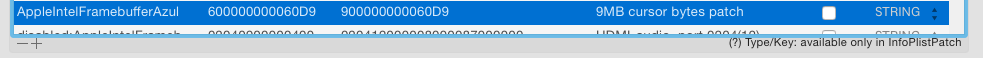 @hukare add this to KextToPatch <dict> <key>Comment</key> <string>9MB cursor bytes patch</string> <key>Find</key> <data> YAAAAABg2Q== </data> <key>Name</key> <string>AppleIntelFramebufferAzul</string> <key>Replace</key> <data> kAAAAABg2Q== </data> </dict> @kvasil See here by Hervé. If you have an O2Micro SD card reader, try that. You'll need to look through the reg to find where you reader is stored, use ioregistryexplorer v2.1