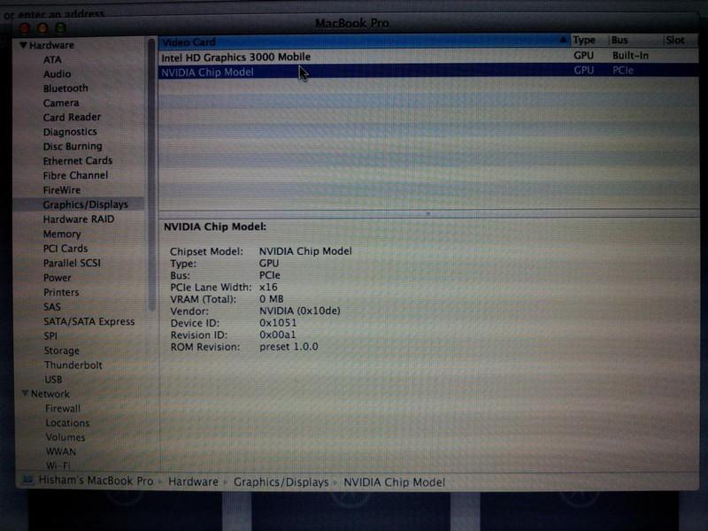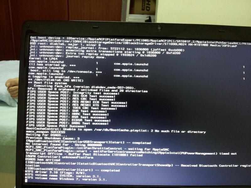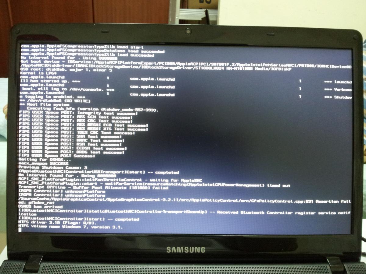 Hello guys @ OSX Latitude forum here is my laptop specs : Samsung Series 3 model 300E4A-S0ESA UEFI capable Motherboard with intel hm65 chipset and Phoenix uefi bios version q09a ( latest OEM Official - updated !) intel core i5-2450m : dual core , hyperthreaded , 2.5ghz base clock , up to 3.1ghz boost 6gb samsung ddr3 ram 1333mhz : 4gb + 2gb intel hd 3000 ( Works on Lion 10.7.x and ML 10.8.x OOB with QE/CI ) nvidia 520mx 1gb ddr3 (cold boot detected as a not supported gpu on OSX , second boot dissappears from both windows and OSX ) hdmi out , vga out , 3x usb 2.0 1TB MBR Samsung Hdd Partitioned into 3 primary + 1 logical ( 3 parts ) partitions with triple boot system planned in mind (win 7 Home premuim OEM x64 sp1 , win 8.1 pro x64 , OSX ) ; partitions as follows : 1. Samsung_Rec , 22GB , NTFS , primary , bootable (contain bootmgr and winpe enviroment) , OEM Recovery , 2gb free 2. SYSTEM , 100mb , NTFS , primary , active , 64mb free 3. Windows 7 , 76GB , NTFS , Primary , 21gb free 4. Extended Logical partition : 4.a. Windows 8.1 , 60GB , NTFS , 36GB free 4.b. Local disk , 100GB , NTFS , Empty (For Future Os'es) 4.c. Gen Files , 673GB , NTFS , 90GB Free realtek 8168B Ethernet intel wirelesses n-130 ( not working like nvidia or even recognized ) realtek alc-269 sound (work with the latest voodoohda but KP my system at boot ) elan ps2 mouse ( multitouch enabled but no multitouch under os x ML ) keyboard (sound functions work but brightness or any other function does not work ) Usb logitech G9X Laser gaming mouse I Started Experimenting with OSX on my Laptop a year ago , now my laptop can boot with chameleon and i can assure you it booted to the following OSX versions : OSX Lion 10.7.x where x = {0 , 5} OSX Mountain Lion 10.8.x where x = {0 , 3} OSX Mavrics 10.9 planned and soon to be tested first on 32gb sandisk usb flash drive I used the easyway using tonycrap apps with genuine OSX apps first for installing Lion and then i tried the hard way with all the terminal and diskutil actions , i managed so far to pull a successful installation and boot out of it , then i tried Myhack app which was alot easier for me , thanks guys ! all of my work to prepare my needed usb installers was made on OSX 10.7.3 - 10.8.5 Vmware (those ones made by souldevteam , they are awesome !! ) now here where i left my work : Things that do work : ram is ok , hdd partitions are ok , intel hd3000 full qe/ci is ok with 384 mb of ram only (i wish if it had more...... like 512mb for autocad for example ,,,,,,, Is it possible ?? ) , camera is working too but i think it performs on a lower quality than windows (needs little tweaks but i dont know how so far ,,,, i might try isight uvc kext edit ) , keyboard and mouse ps2 both work basically ( multitouch function and most of the function combanations on my keyboard do not work ) , dvd drive is ok , Update is ok too (10.7.5 and 10.8.2 confirmed working well so far) , restart and shut down are ok no problems (after second boot ofcourse) , usb is ok too 3 ports are functioning well Things that Do Not Work : ethernet ; i.e. realtek 81168B (i think i need a kext cause when i installed lion from uni****** it runs well) , bluetooth (intel v3.0HS) is there but not working ( although when i open system report i see it recognized ) , nvidia 520mx Big problem It really bothers me !!! its getting annoying too i already tried verbose mode and it seems to stuck or hang after loading every thing and when its ready to go to the logon screen it gets stuck so its not a kernel panic it has something to do with either of AGPM kext or the ntfs drive scan feature in mac os x (these are the last things to be loaded before entering the logon screen ) here is the picture after loading windows :(first mac os boot) Here after the crash : (Second Boot) and if i load windows afterwards (third boot) (no matter if i shutdown or restart ; same result ) Nvidia graphic card (520mx 1gb ddr3) is missing from windows !! and no sign for it unless i do a restart to windows (Forth boot) sleep mode (cannot recover from it) , sound card (realtek alc269 works with voodoo 2.7.2 but KP on restart) , clock time also is different than windows , wireless card intel n-130 (so far not supported) , SD card slot also not working elan ps2 mouse ( multitouch enabled but no multitouch under os x ML ) keyboard (sound functions work but brightness or any other function does not work ) and other things that i dont remember but i will add when i figure it out .... i attached system info table for you that i took last year to see hardware id's I would like to finish my build when the time is right thats for sure ! only If any one can help please i will appreciate it .... sniper9911