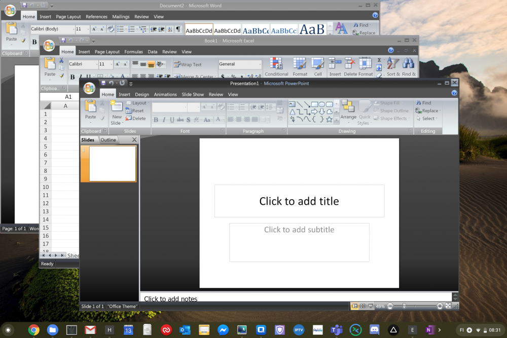 Thanx to some CrossOver for chromeos (actually for Android) we can now run Windows applications - its not perfect - but its fun to play around with. Sadly, it was pulled from the play store a while back by Google - but grap the APK and you should be good to go. Decided to try out Microsoft Office 2007