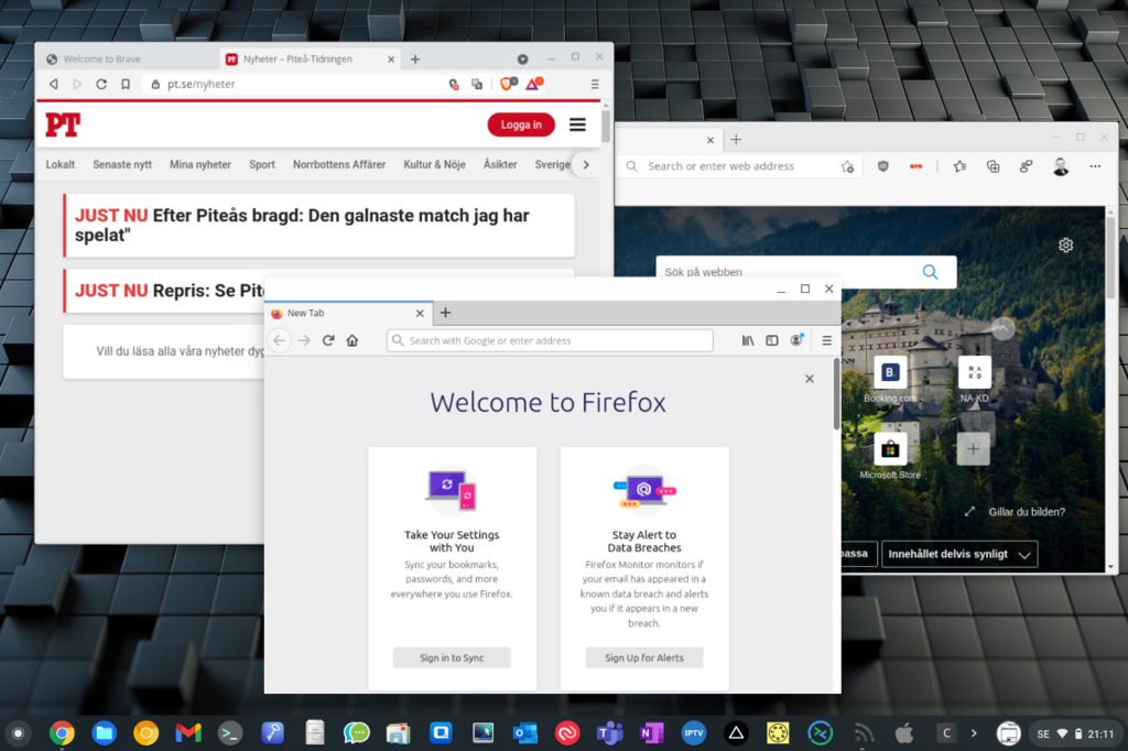 Hi, After having installed a few browsers in crostini i noticed that links now open in firefox - eg. when clicking on a link in Geary. To fix this, this is what you wanna do: Popup a crostini console and type: unset BROWSER xdg-settings set default-web-browser garcon_host_browser.desktop sudo xdg-settings set default-web-browser garcon_host_browser.desktop Credits: