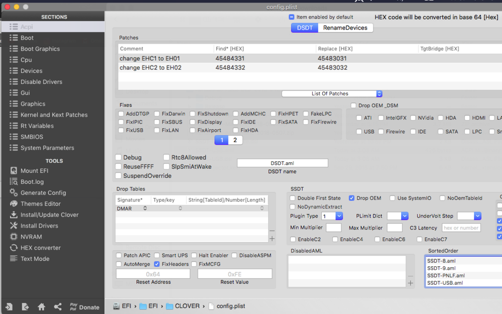 Got the latest FakePCIID_XHCIMux kext file from Rehabman's github, and installed it to L/E, repaired permissions, and rebooted. no luck. Same thing is still happening. Reading through your post, I checked my DSDT for the Method _INI patch, and it appears to be there. The HPET, IRQNoFlags is set to 0,8,11,15. I have a USBInjectAll kext that appears to be from Rehabman as well. I noticed that your's from your post is different. but used in El Capitan. Should I grab and try that one instead? To the video points. I haven't experienced any video glitches that I have noticed. I did change the IOGraphicsFamily patch. But I think you may have accidentally opened up the wrong DSDT. Looking at the pic it shows that you were looking at "System DSDT". I opened mine here, and the IGPU layout injection is for the HD 4600. I even checked the DSDT from the original reporting files, and it shows the 4600 as well. debug_1520.zip