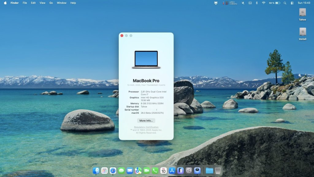 Released Sep. 15th, 2025. Version 26.0, build 25A354. Tahoe is the last version for Intel platforms and marks the end of the long road for Hackintosh computers as we've known it since 2006. It drops official support for all 8th gen. platforms + 9th gen. 2019 Coffee Lake MacBook Pro15,x and, somehow surprisingly, for 2020 Ice Lake-based MacBook Air9,1. This leaves final support for only a handful of 9th gen. and 10th gen. platforms. This being said, support for Kaby Lake graphics survives, all KBL kexts remaining present, so good news to all owners of Skylake laptops who will all be able to run Tahoe with full acceleration through the SKL graphics patch that's been available since Ventura. For other older iGPUs, patches should hopefully remain available through OCLP tool (once updated and released) to regain graphics acceleration. Officially supported Intel platforms are now limited to : 2020 iMac20,x (10th gen. Comet Lake) 2019/2020 MacBookPro16,x (9th gen. Coffee Lake and 10th gen. Ice Lake) 2019 MacPro7,1 (Cascade Lake) NB: macOS Ventura is now unsupported. View full article