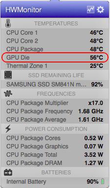 Hmm, I've made additional tests and, since my dGPU appears turned off at boot time, I tried to turn it on through SSDT or DSDT edits. I've not managed to reach success yet. However, this reminded me that, many moons ago, I had noticed that HWMonitor never displayed any info about GPU at startup, only after wake. Basically, I would get this: At startup and until sleep After wake Now, if you look at the DSDT code for the _WAK method, you'll notice the following section: If (LOr (LEqual (Arg0, 0x03), LEqual (Arg0, 0x04))) { If (CondRefOf (\_SB.PCI0.PEG0.PEGP.EPON)) { \_SB.PCI0.PEG0.PEGP.EPON () } If (CondRefOf (\_SB.PCI0.RP05.PEGP.EPON)) { \_SB.PCI0.RP05.PEGP.EPON () } } ` To me this code is partially erroneous in the sense that there is no PEGP device under RP05 in any ACPI table, however the discrete GPU is definitely handled by PEGP under PEG0. Check what you get in HWMonitor at startup. If no GPU info appears, I believe your dGPU is off. If it appears, we'll have to find the right code to turn it off. If, like me, your dGPU appears turned on only after wake, apply the following DSDT patch: edit the SSDT table where method EPON is defined and create a new EPOF method (it did not exist in my SSDT-xx table). EPON method only sets ONOF parameter to 1 (true) so you can simply copy/paste the EPON code in a new EPOF method where you set ONOF parameter to 0 (false). in the above DSDT _WAK code, you can then replace the call to EPON by a call to EPOF instead. In the relevant SSDT table, you may notice that the ONOF parameter is used in SGON and SGOF methods that turn the dGPU on or off. although it would appear like the obvious thing to do, removing the above _WAK code is simply ineffective. In a nutshell: in your relevant SSDT-xx table, add this after EPON method: Method (EPOF, 0, Serialized) { Store (Zero, ONOF) Return (Zero) } in your DSDT, change the _WAK code to: If (LOr (LEqual (Arg0, 0x03), LEqual (Arg0, 0x04))) { If (CondRefOf (\_SB.PCI0.PEG0.PEGP.EPOF)) // Replace EPON by EPOF { \_SB.PCI0.PEG0.PEGP.EPOF () // Call to EPOF to turn off dGPU } // Comment out or remove those useless 4 lines below // ------------------------------------------------- // If (CondRefOf (\_SB.PCI0.RP05.PEGP.EPON)) // { // \_SB.PCI0.RP05.PEGP.EPON () // } } // <----- Don't remove or comment out that closing bracket! ` I think that should sort you out if dGPU is indeed turned off at startup and only activated after wake. Meantime, I'll keep trying to find the right code to really turn on or off the dGPU at system startup.