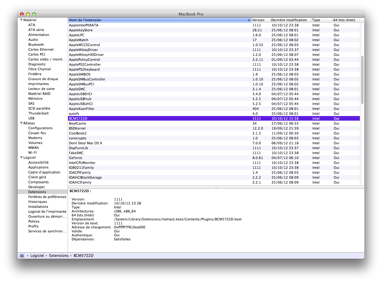 I've updated from v4r7 to v4r12 (not that I actually needed to, but...) and now have the same kext in /S/L/E as I had in /E/E. But is that kext actually loaded?