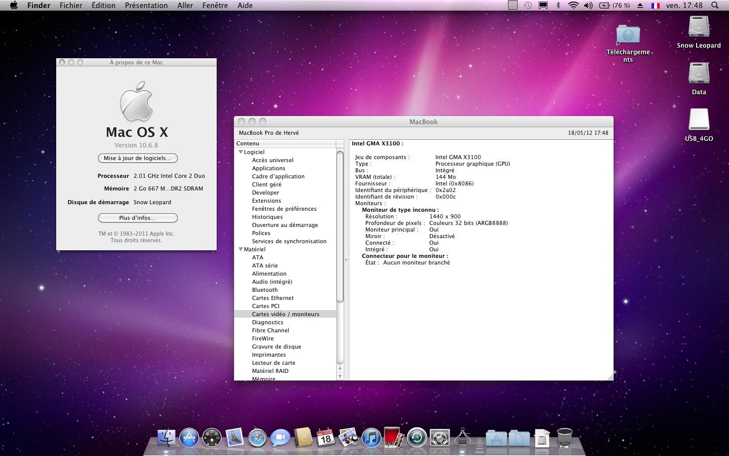Big up on this ageing thread! Hi everyone, Hervé from France here. I've been a Hackintosh fan a tad over a year having started with Leopard 10.5.8 on my overclocked Dell Inspiron 6000 laptop (which works like a dream). Tried to install SL on that one, but always failed miserably. My wife's got a Latitude D620 which I'm thinking of "converting" too. Same with my office D630 for which I have my own personal HDD to play with. I mean to set them up with dual-boot Win7/SL (or maybe Lion) one day. For the moment, I've got my hands on a D430 that a friend of mine asked me to check to see if I could get something out of it. Basically, it's running like a dead dog under XP. I got it with 1Go of RAM, 60Go HDD and a U7600 1.2GHz C2D CPU. I thought it'd be a lost cause, but I added 1Go of DDR2-533 to it and attempted SL 10.6.8... successfully thanks to this place! D430 was updated to standard BIOS A09 before starting. Here's my method: 1) damaged/broken middle ports meant the D430 only has 1 USB port left, so USB boot pen/key installation was sole way 2) made Nawcom ModCD/retail SL 10.6.3 USB boot key from Hackintoshed Inspiron 6000 3) installed SL 10.6.3 (ticked off printers + extra fonts + languages, rest was left at default settings) 4) rebooted off USB pen drive and selected newly created Mac OS X installation 5) at that stage: no sound, no wireless, basic 1024x768 video 6) downloaded EDP 1.9 off this site, copied to separate USB key and transferred to Hackintoshed D430 7) launched EDP package and proceeded to kexts installation for D420&D430 Dual core models: - VoodooPS2controller - NullCPUPowerManagement - SleepEnabler - VoodooBattery - Emulated SpeedStep - Latest Chameleon rebooted off HDD sucessfully -> full graphics 1280x800, wireless working, but /!\ no sound /!\ 9) installed DoubleCommand for Keyboard re-mapping 10) downloaded Ukelele and copied Logitech FR layouts into /Library/KeyboardLayouts, then selected as Input off PrefPane 11) proceeded to Software Update, including dreaded 10.6.8 update 12) re-applied EDP 1.9 kexts installation just in case 13) rebooted and was asked to install downloaded updates (I thought they had been installed) 14) Big GULP as I clicked "Reboot" 15) Pretty much a TOTAL SUCCESS at reboot!!! Working D430 under SL 10.6.8 Just need to try and fix the sound now. Thanks a million for this site and all its goodies, it's made my day! The D430 works really well under its new config. Much more faster than with XP, but there might have been a problem underneath there... Things that don't work... yet? - no sound - does not go to sleep when lid is closed or FN Esc is pressed