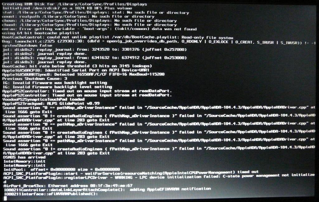 Hi, I've tried MyHack 3.1 + OSXL Bootpack USB key method as described in this other thread: https://osxlatitude.com/index.php?/topic/1375-d630-need-help/#entry9336 Not only does it appear fairly slow, but it ends up with blank screen after Apple-logo grey screen with spinning wheel. Difficult to move forward from there on and to know whether it gets stuck or not... I've tried your suggested option/boot flags but it ends up the same way: blank screen after a split second during which it goes grey. I attach pictures of the last messages displayed just before that (screen2 show very last messages before screen goes dark). There are 2 lines reporting an "invalid firmware" in relation to backlight. Could this be linked? -