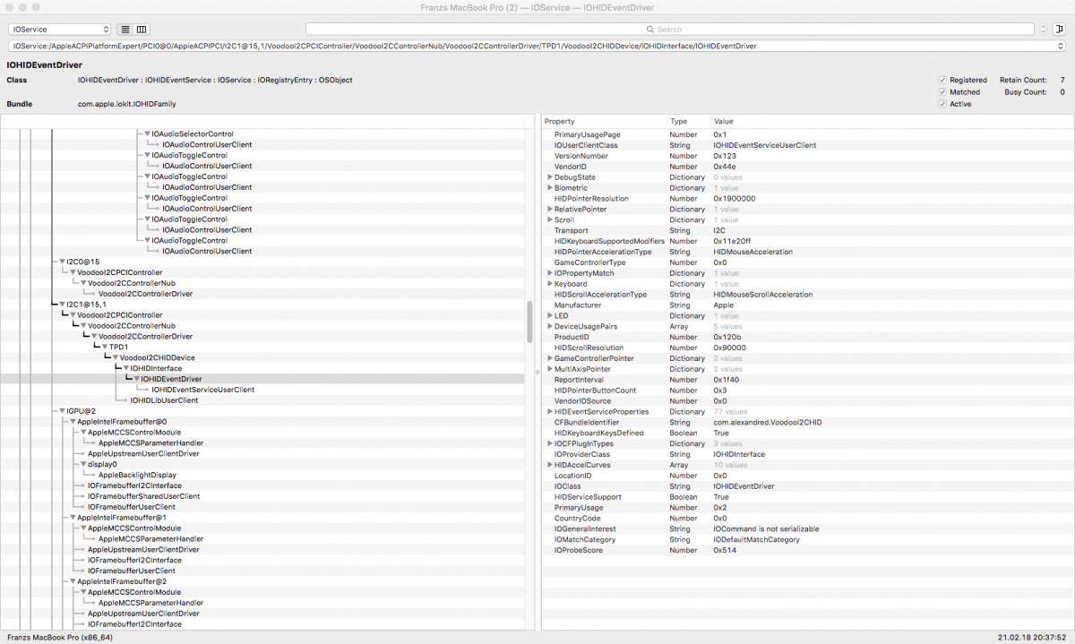 hallo i´m still at work but i can say the interuptspecifiers are 10 for I2C0 11 for I2C1 is " precision trackpad" the manufacterer? all i can say its an ALPS thanks Unbenannte_Nachricht.zip