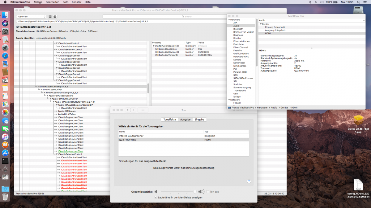 Hallo again did some tests to setup my "hackmacbook" dual monitor is working, 1. internal and 2. external via HDMI but I can't get HDMI audio to work sometimes I have the device in ioregistryexplorer (see file ) but I can't say why the next restart its gone. did some searches, but Kabylake is a littlebit difficult found something about device HDAU, but its not existing in my DSDT FakePCIID.kext and FakePCIID_Intel_HDMI_Audio.kext isn't working too Regards IOHDACODECDevice_exist.zip config.plist.zip
