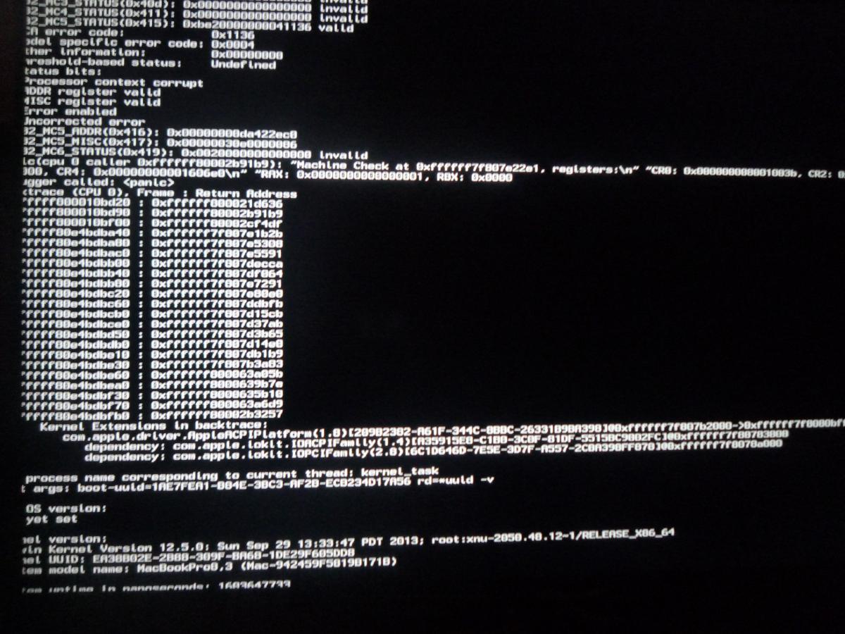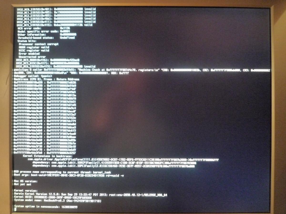 Just got me a nice Intel NUC DC3217IYE and found your bootpack. Made a brand new boot USB for 10.9.1 and applied your bootpack by second run of myHack 3.3.1 and installed the extras. Booting from that USB for the NUC got me a message that the BIOS setting for the video should be 96, 64, 32 MB whereas mine was set to it lowest possible value of 128 MB, can't go lower in the NUC's BIOS. Just below the message it mentioned to press a key to continue, so I did ... With the boot package it ended in a panic and some errors .... stopped at System uptime in nanaseconds and some number ... Made a second USB Boot for now 10.8.5 and without the boot pack. Same 128 MB video message but after hitting a key the white apple screen came with the circling wheel and after that the usual stuff as normal when you install OSX. Format the harddrive and installed on the harddrive. The system continued very slowly with installing whatever it needs to install but at another couple of minutes to go it ran into some unexpected error and the whole install failed. So I installed the extras folder again this time for 10.8 of course and did the exercise again. Now it gave an OSX Latitude boot screen with a slowly decreasing time to put in any options. Let that run through and the system continued with a verbose boot ending in the below picture, hope you can read it. For what it's worth, no network connected. Just power, usb, big telly through HDMI connector. Internals: RAM = Kingston KVR16S11/8 = 8GB 1600 CL11 SODIMM SSD = Kingston SMS200S3/60G = 60GB mSata Hope one of you can help !!!!!