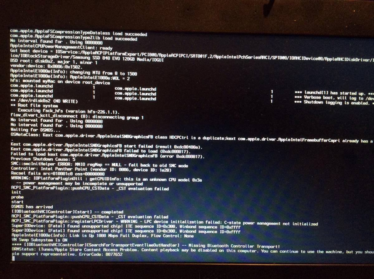 ..... Oh S. ... Updated to latest hd4000 drivers. Looked very promising almost the artefacts gone. But first Some complains About unfavorable kext and after reboot this ..... In safe mode it boots however ... Luckely .....