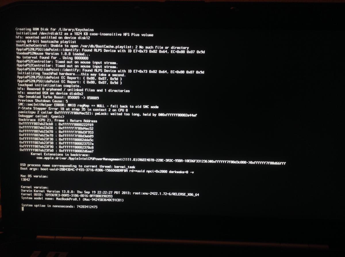 I'm still using myHack, like I was on the first page. Are you asking me to remove all the kexts from Extra/Extensions? How would any of the hardware work if I did that? Am I supposed to get other kexts for the new FakeSMC.kext somewhere? I'll try it with and without the kexts but I expect failure. EDIT: I decided to first try using the new FakeSMC.kext with no other changes. I am having more success, but it could unrelated to the newer FakeSMC.kext. It still throws an ACPI_SMC_PlatformPlugin::start - waitForServices(resourceMatching(AppleIntelCPUPowerManagement)) timed out error on normal boot just like before. However, I tried typing -v -x PCIRootUID=0 during boot and it now finishes booting. I have to use an external keyboard, mouse, and HDMI, etc. I think I need to load a custom DSDT.