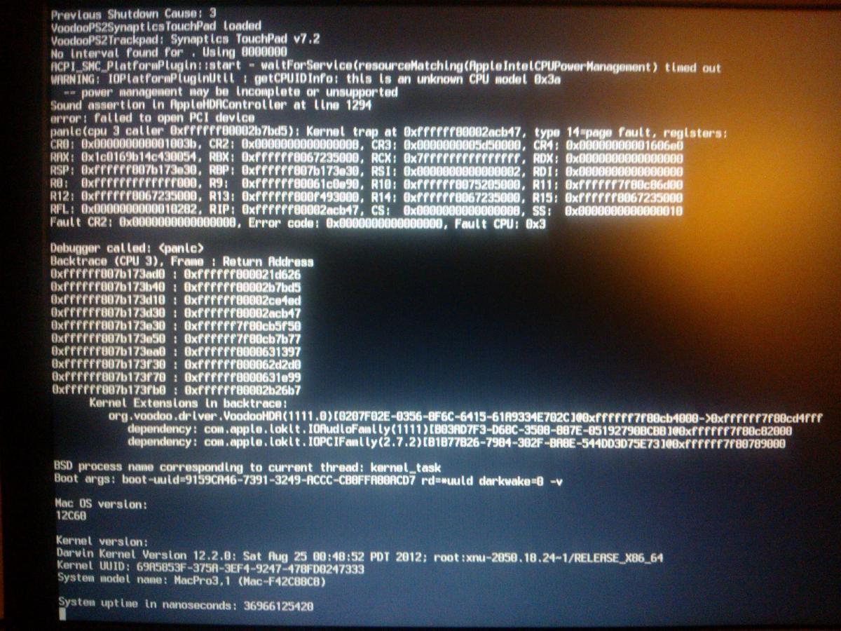 This are my Toshiba Satellite A665-11T specs http://www.toshiba.co.il/en/laptops/satellite/a665/satellite-a665-11t/ Intel® Core™ i7-740QM Processor technology :8,192 DDR3 RAM (1,066 MHz) NVIDIA® GeForce® GTS 350M (1,366 x 768) Broadcom® Wi-Fi® 802.11b/g/n BCM94313 Broadcom® Bluetooth® 2.1 + EDR (V2.1 - BCM2070 integrated in BCM94313) Gigabit Ethernet LAN 10BASE-T/100BASE-TX/1000BASE-T hybrid digital (DVB-T) and analog TV tuner Built-in Web Camera & Microphone im trying to build a hackintosh: USB MacOX 10.8(ML) builded with myHack but i can't boot in to the install. cpus=1 busratio=12 -f -v I also try Niresh's OS X 10.8.2 (12495)