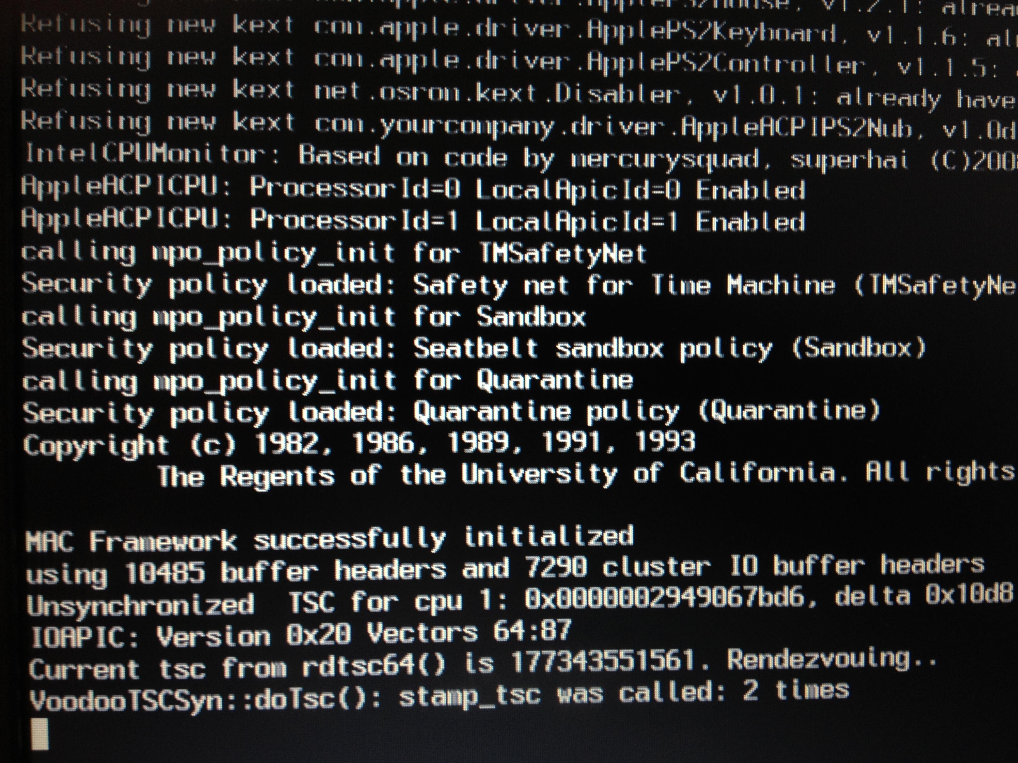 Tried the boot flags and it's hanging at: IOAPIC: Version 0x20 Vectors 64:87 Current tsc from rdtsc64() is 1426251220185. Rendezvouing.. VoodooTSCSyn::doTsc(): stamp_tsc was called 2 times ACPI: System State [s0 S3 S4 S5] I'm running full myFix now... But won't that reset the Extra folder containing the kexts that I need for the D630?