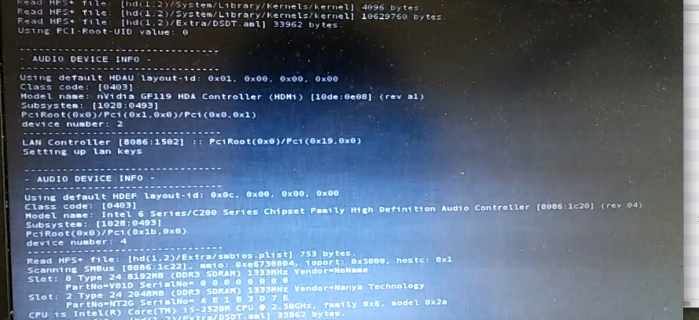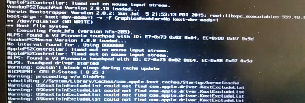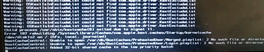 I'm about to redo it from the scratch, this one worked good for years, but perhaps somebody can give me a hint so I don't have to go the hard way. My install is Chameleon it looks like it is fubar now. It started getting the dark screen after finishing booting very common, lots of talk about this nothing really worked 4 me lately I found out if I closed everything before a shutdown it would work & was using that KISS for ages until now. Found the NVDIA web that would work with my system, made so many tries and eventually booted to low res, installed the NVDIA but it would stay in low res, so I tried to rebuild the ssdt and running some rebuild cache with the ketxtwizard and it is where I'm now it boots in low res but at the login I get the beachball of death and nowhere to go from there. Been reinstalling kexts to no avail same result, boot with NoRebuild Cache same. A couple of weird messages from the -v Thanks in advance (I have other drives with other versions I'd like to keep this Yosemite). Of course my USB for this is gone so that is why I'm at the point of redoing it from the scratch unless there is a hint/trick. Thanks in advance