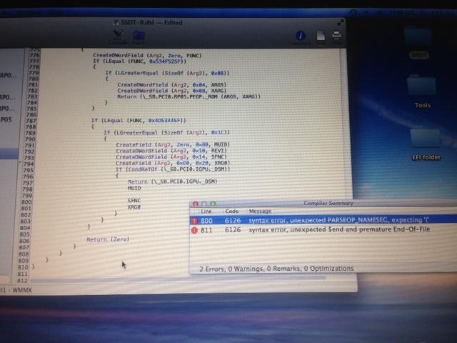 21. Hi pokenguyen Very nice of you to help me promptly!! I have deleted line 797 to 801--> that region is already fine Unfortunately, after compile again, there is one new error happened: line 226 code 6084: Object does not exist (\_SB.PCI0.IGPU.HDSM) if you need picture , please let me know.