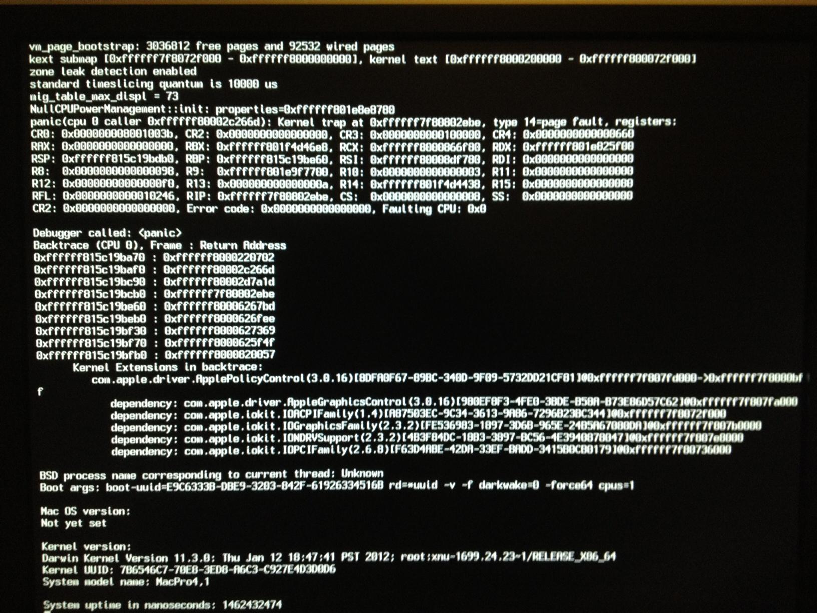 Hi, I have a Dell Precision Workstation T7500 with 2 Quad-Core 'westmere' Xeon [email protected] and 12GB ECC RAM installed. I got it up&running very smoothly with unifail - Install 10.8.2 - multifail = OK! BUT, It seems impossible for me to even boot OSX with both CPU's installed, I've tried any version.(tried 10.5.x/10.6.x/10.7.x/10.8.x) What do I need to do to boot this system with both CPU's installed? KP error and instant reboot every time, very hard to be quick enough to record or take a pic of it..... Any ideas or suggestions? Cheers//Zztony
