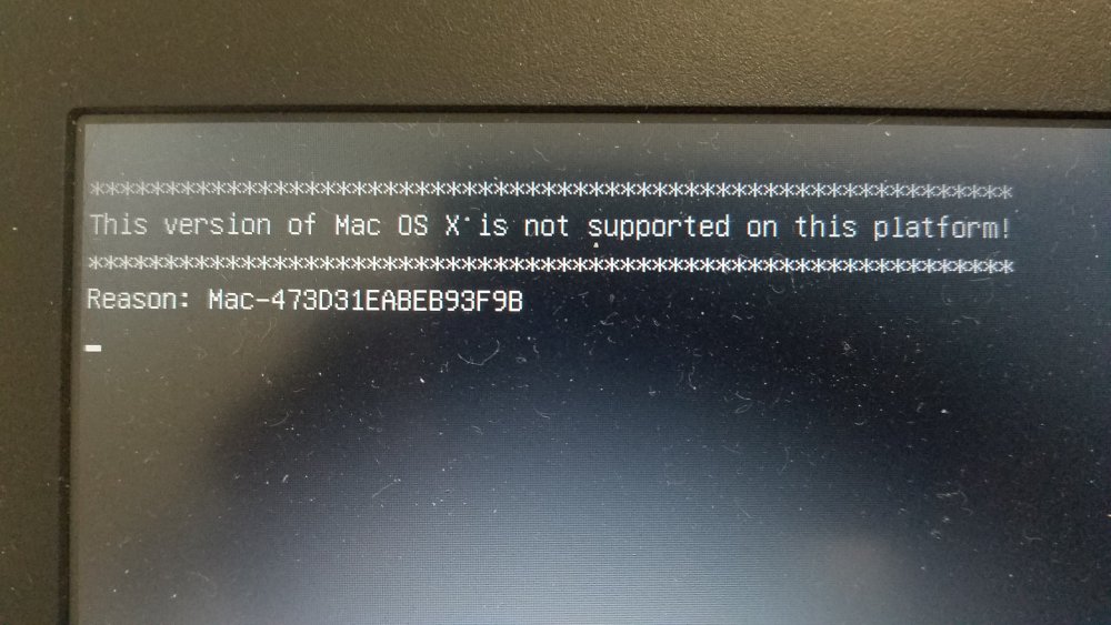 Hi Jake, now I'm trying to install El Capitan on the same laptop, Dell Latitude E7270 Core i7 DW1830. I use the same EFI that was successfully used in installing High Sierra. But when the USB installer is used to install, the thing that appears is: This version of Mac OS is not supported on this platform! Reason: Mac-473D31EABEB93F9B (as shown in the picture).