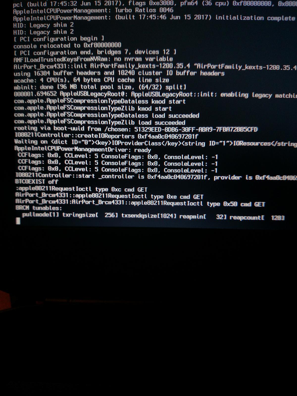 I booted up the USB drive, and It took about 30 minutes (I know its not meant to be that long) and I got stuck with the spinning ball. I did make sure the Intel HD Injection was disabled I'm aware I need to downgrade my BIOS, problem is, I can't. Whenever I bought this laptop from eBay, It had Computrace enabled. So Is there a way without downgrading the BIOS? My BIOS version is A18 -