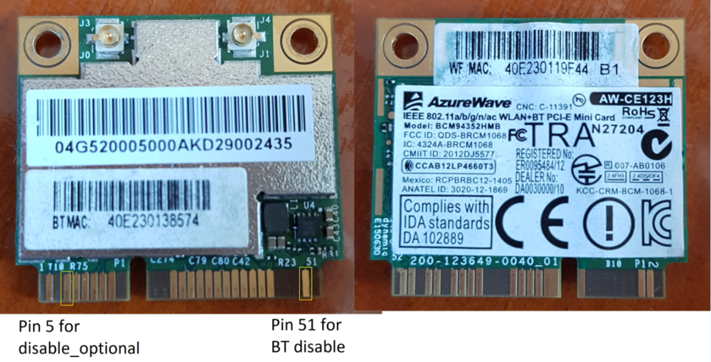 1. if anyone is still interested in Azurewave AW-CE123H bluetooth enable by pin taping It's correct that pin 51 has to be taped and also pin 5 , but not pin 20 (Wifi disable) Pin assignment at page 13/16. https://techship.com/download/azurewave-aw-ce123h-data-sheet/ Works on my HP dv7 6010eg with bios F.1B modded by Donovan6000 (Thanks!) It's not possible then to disable Bluetooth by the hardware F12 key. Device ID: USB\VID_13D3&PID_3404 BCM20702A