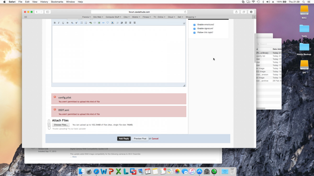 Hello everyone big thanks for this huge work, I m a total newbie on this stuff, and even if I didn't have much knowledge of what I was doing, your guides are so clear that I manage to do a lot thanks a lot really. now lets cut to the chase I have a Latitude E7440 and I managed to install everything apart from the following issues: - Sound fully works apart from headphones Jack, doesn't matter what I do it it stick the ocean sound - Wifi doesn't work, probably unsupported I m already ordered a DW1510 if I understood well, it will work oob The eadphones are not really an issue, I m using USB headphones with Mic and they fully works, but I was wondering how to fix that. (I already install many version of the AppleHDA, AudioAUUC, Voodoo2 or whatever you suggested in this 27 pages of topic) keep up the good works thanks for everything.