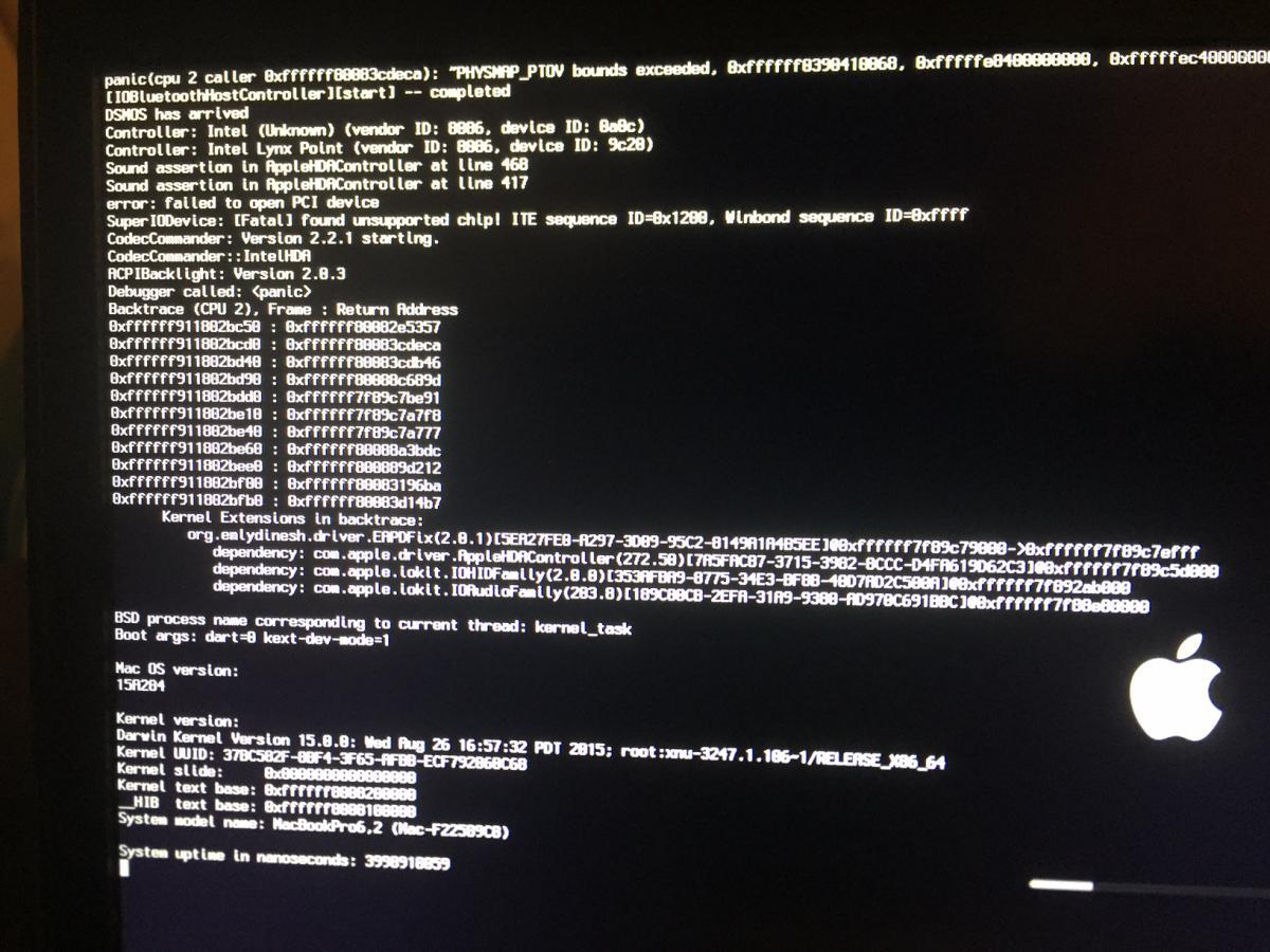 Hey Jake, I have a question for you, its about Yosemite not El Captian Few days ago you give me a new config.pst and a dsdt for my E7440, to fix some minor issue I had, since that, sometimes (random) during the bootstrap of my laptop I receive a new error regarding the Audio kext ( I guess) any suggestion how to fix? should I continue updating my Yosemite to elCaptin even with this error ? thanks a lot