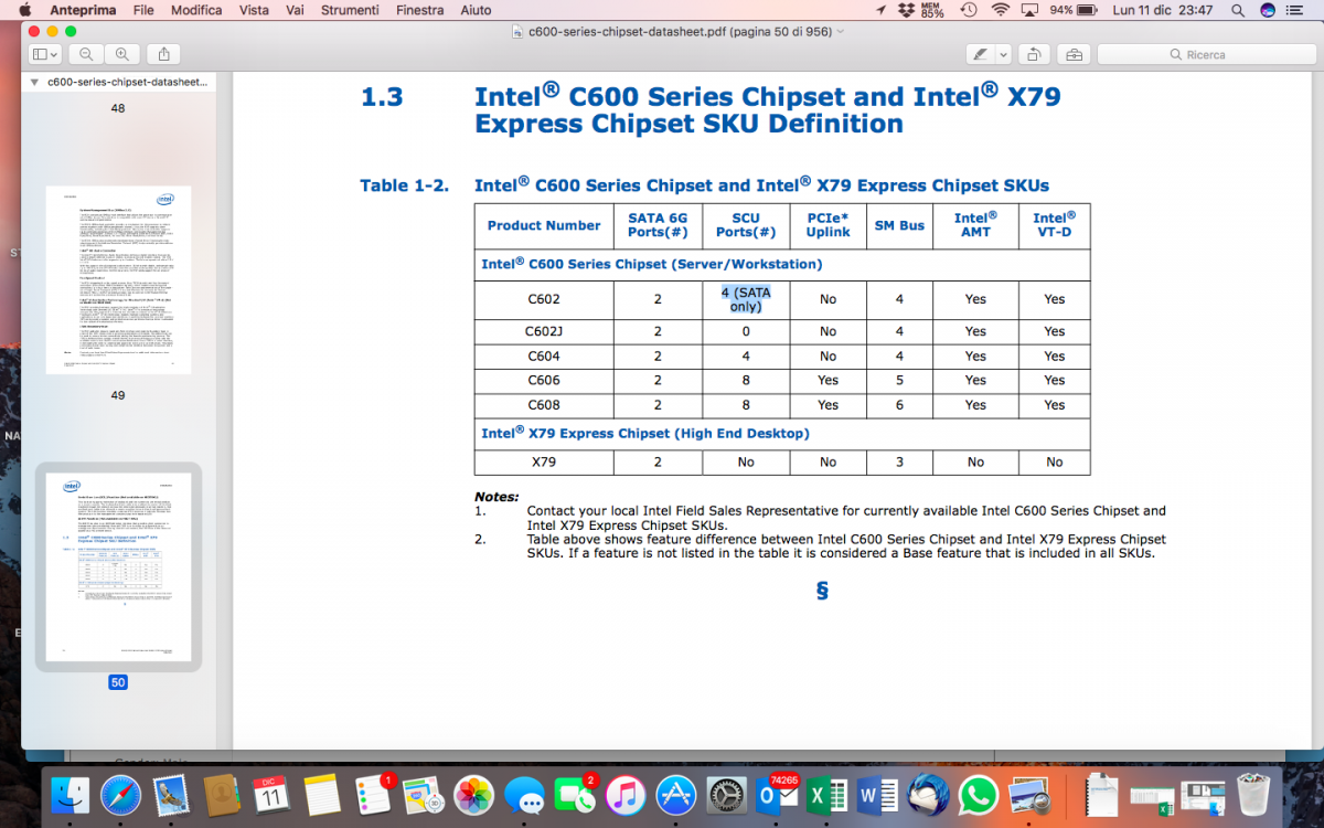 Some ideas for sharing (maybe useless) I'm looking into C600 chipset specs. C602 4 ports are SATA only. Datasheet speaks about virtual Root port at D17:F0 for C602 I'll try to study a bit (is quite hard for me to understand) Chapter 26. PCIe Virtual Root/Switch Port Interface Registers (SRV/WS SKUs Only) Chapter 26 provides a detailed description of all registers that reside in the virtual Root port (for Intel C602, C602J, C604 Chipset SKUs) or virtual switch port (for Intel C606, C608 Chipset SKUs) of PCI Express* controller. For virtual root port, this controller resides at Device 17, Function 0 (D17:F0). For virtual switch port, this controller resides at Bus N+1, Device 8, Function 0 (BN+1:D8:F0). c600-series-chipset-datasheet.pdf