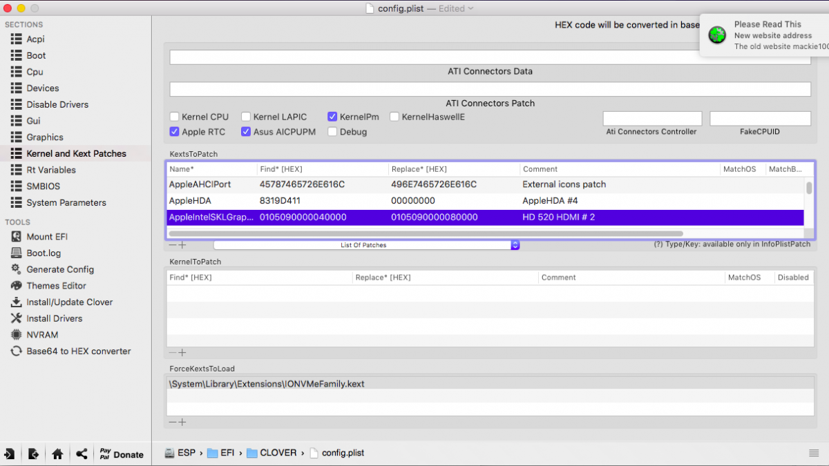 15. Need your help. I have 10.11.6 installed on my E5470 as Jake Lo E7x70 guide. Specs: Intel I5-6200U 16GB (2x8GB) 2133MHz DDR4 Memory Intel HD520 Graphics, 1600x900 (HDMI + VGA) SSD Sandisk X400 256GB Realtek audio ALC3235 LAN Intel I219LM I used same boot pack of E7x70 included DSDT (should not but I can not get boot into El Capitan without it). I can not get Intel I219LM show up although IntelMausi kext loaded in /L/E (tried both 2.1 and 2.2). I have a TP-Link WN725N USB wireless worked but can not sign into App Store. It seem HDMI Framebuffer does not work as well because of when plug in additional screen the built-in becomes black. I attached compressed of - EFI/Clover/ACPI/origin - config.plist + Clover/kext - IOReg - SysProfiler Sorry that I have little knowledge in dsdt patching. origin.zip CLOVER.zip MacBookPro.ioreg.zip SysProfiler-MacBook Pro.spx.zip