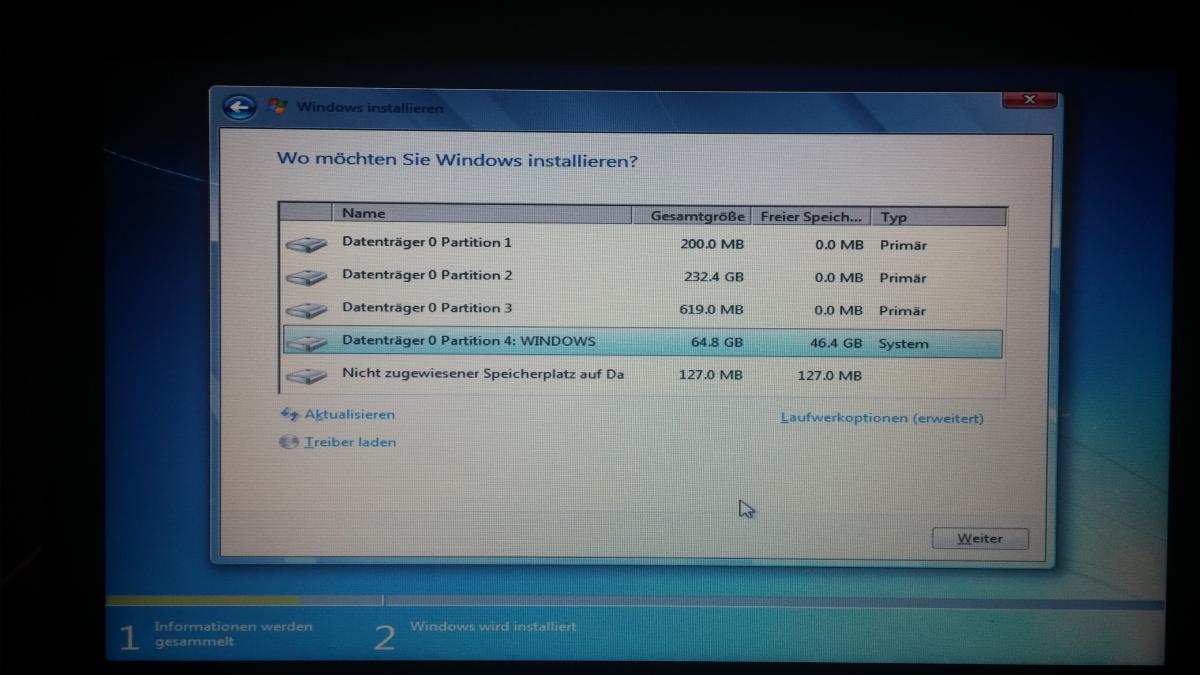 There are some files on my "WindowsHD" now. Picture1 If I try to start "Windows" (Picture2) I just get a black screen (Picture3) If I try to start "Windows NTFS" i will get into the installation process again which i did allready. There are allready about 18GB used by Windows (Picture3/4)